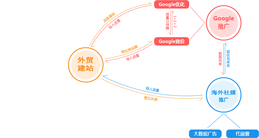 成都外贸推广公司为您提供全面的“整合”方案,为您的企业提供全生命周期的精细化服务和咨询。为此,我们搭建了从广告投放到SEO优化,从内容运营到网站开发,从品牌策划到电商运营的近100人的团队,组成了一家集全球渠道资源、人才资源、技术资源为一体的数字营销机构,为您一站式解决出海难题,实现品牌全球推广!